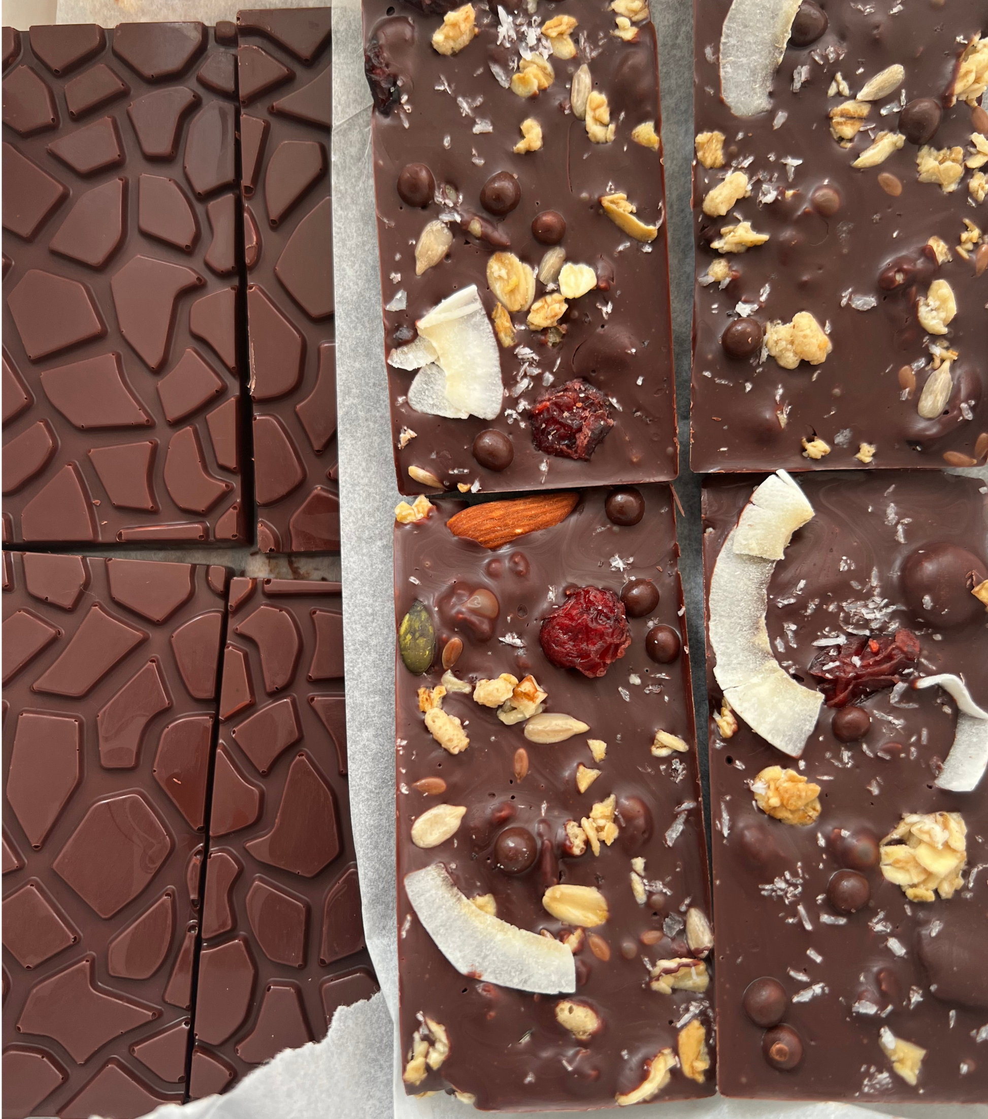 Savor the perfect blend of rich, 70% dark chocolate and crunchy Granola in our new Dark Chocolate Granola & Red Fruits Bar. It's a delightful treat that combines indulgence and wholesome crunch in every bite.